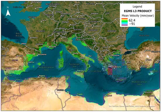 The European Ground Motion Service (EGMS) is based on Earth observation products using Synthetic Aperture Radar Interferometry (InSAR) data from the Sentinel-1 mission [71,72]. Its goal is to determine and measure vertical ground movements across the European Territory caused by natural phenomena including tectonic activity, groundwater extraction, mining activities, etc. It is expected that the EGMS can assist a variety of interdisciplinary stakeholders in monitoring potential structural hazards in constructions (e.g., dams, buildings, road infrastructure, bridges), as well as promote data-driven decision-making in the fields of spatial planning and natural hazard risk mitigation [73,74].