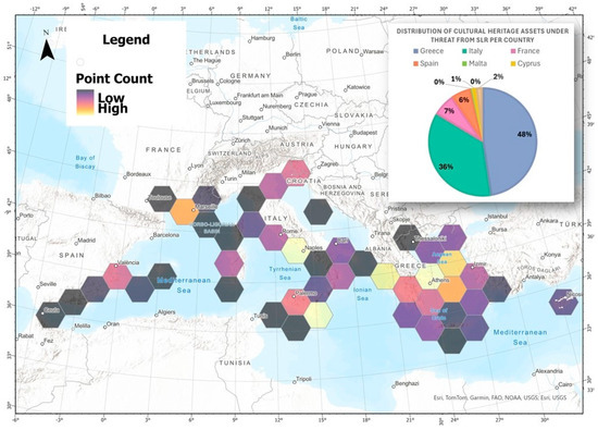 Density of Cultural Heritage Sites under threat from SLR in the Mediterranean Region (Low: 1–High: 16).