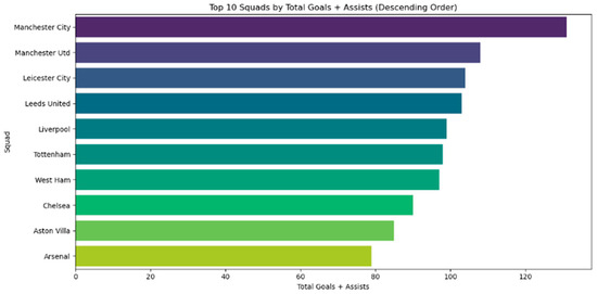 This study’s most significant finding is the impact of matches played (MP) on player performance. MP, with the highest correlation value of 0.24, stands out among other workload indicators like minutes played, starts, and full games. This emphasizes the central role of MP in influencing player performance. The study also reveals that for players with exceptional offensive skills, the key to success lies not just in playing more minutes but in participating in as many games as possible. This insight suggests a strategic approach for managers and coaches: systematically rotating top players. By doing so, they can ensure these players’ participation in successive games, balancing the need for rest and the goal of consistent, high-level performance while reducing injury risks. Furthermore, the research points to the importance of the squad’s quality in player performance. Remarkably, half of the top 20 players belonged to the top 4 teams in the league, illustrating a clear link between player excellence and team strength. This finding highlights the necessity for aspiring athletes to join top teams and for such teams to focus on recruiting consistent, talented players.
