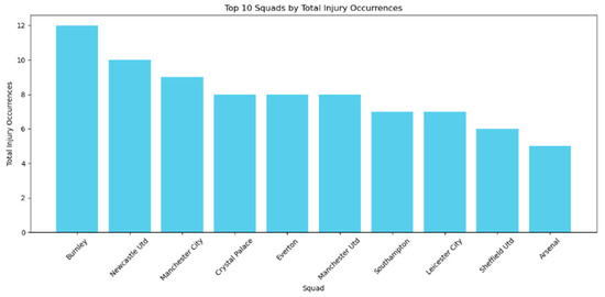 Top 10 Squads by Injury Occurrences.