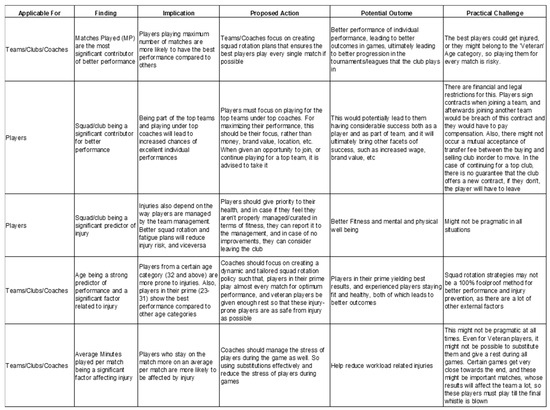 The research provides a holistic view by integrating and scrutinizing a variety of football-related variables such as player workload, fatigue, performance indicators, and personal attributes. This comprehensive approach yields a deeper understanding of the complex interactions among these factors. It directly impacts decision-making in sports, offering valuable insights for athletes, coaches, and teams. The study guides informed, data-driven strategies in team management, training, and injury prevention by elucidating the relationships between workload, player characteristics, and performance outcomes.