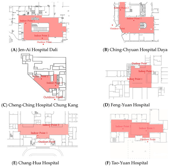 In this study, on-site recordings of the acoustic environment in eight hospitals in north–central Taiwan (Table 1) were taken for subsequent experiments and analyses. The selection of the eight hospitals was strategic, encompassing both public and private institutions, to ensure a more comprehensive study of the hospital lobby under study.