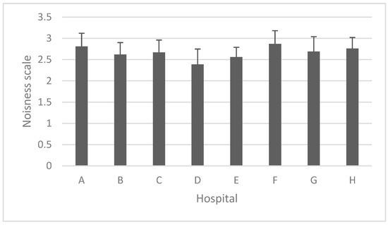Noisiness with the standard deviation of each hospital according to the questionnaire responses of subjects.