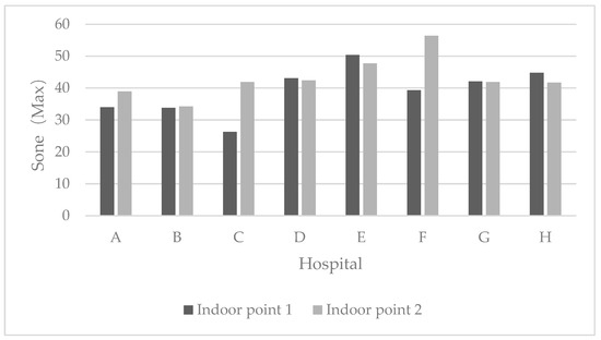 - In the third stage, after organizing the data obtained above, the psychological noise parameters of the subjects in each hospital were first calculated based on the data from the questionnaire. Subsequently, SPSS was employed to conduct factor analysis on the noise events listed in the questionnaire to identify the main noise events affecting the subjects. Subsequently, the audio data were analyzed to obtain the 20 Hz–4 kHz spectrum and loudness parameters of the major hospitals, that is, the Sone (MAX) data. Lastly, the functional attributes of each tested hospital lobby were analyzed, and the eight hospitals under study were grouped based on their functional attributes and Sone’s (MAX) data.