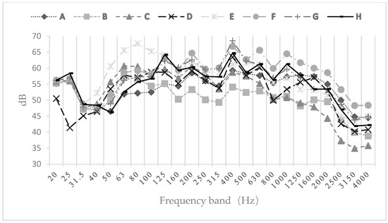 Frequency band (20 Hz–4 kHz) of the 8 hospitals.