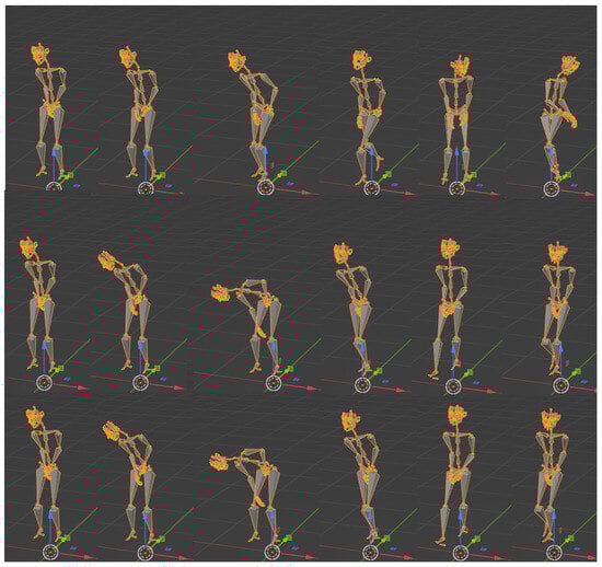 Generation of the next pose of the character: Animating 3D rigid bodies by hand implies moving the parts of the skeleton incrementally to generate the illusion of movement. This technique is used heavily in stop motion animation. Although it can be done with dolls and figurines, our case implies virtual rigid bodies. This is done by taking into account the full motion up until that point, duplicating your subject’s last pose and modifying incrementally the position of the joints to advance the motion. Instead of moving all the necessary keypoints to the next pose by hand, we propose a machine learning model that predicts the next pose considering all the former poses.