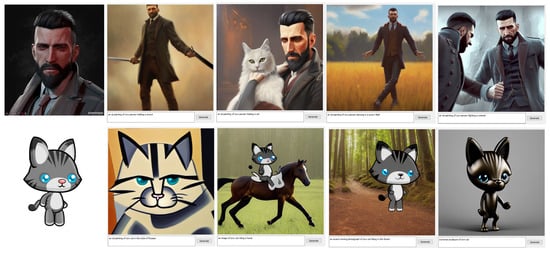 - Ruiz, N.; Li, Y.; Jampani, V.; Pritch, Y.; Rubinstein, M.; Aberman, K. DreamBooth: Fine Tuning Text-to-image Diffusion Models for Subject-Driven Generation. arXiv 2022, arXiv:2208.12242. [Google Scholar]