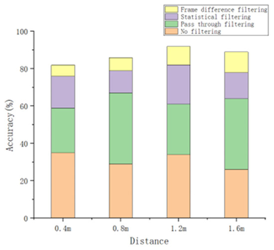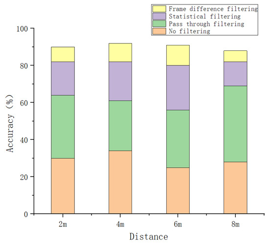 Effect of each filter module on overall accuracy at different distances between human body and radar.