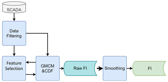 The paper is structured in the order that follows. In Section 2, selected SCADA signals, case study information, and details of learning and test data sets are introduced. It also covers the mathematical foundations of the employed methodologies. The data filtering process and feature selection are discussed, and the applied GMCM model’s optimization process is explained. The presentation of the proposed framework complements this section. In Section 3, the resulting FI signals from the studied cases are discussed. Finally, a summary of the contributions is given in Section 4.