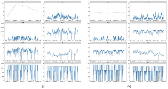 The optimal splitting of the data into the training and the test periods for supervised learning techniques ranges from 60% to 80% for the training period (being the remaining data for the test period) [39,40]. Therefore, approximately six months of data were used for learning the model and, approximately two months of data were used for testing it.