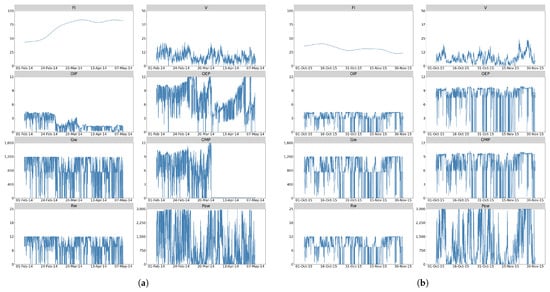 In order to make a selection of the most interesting set of variables to assess the health of the component, the available variables, their relationship and the experience from the literature review were taken into consideration [41]. In this sense, in site 1, 10 variables have been considered to analyze the blade’s health status, nine variables in the case of the generator, and seven variables were available to track the gearbox’s health status.
