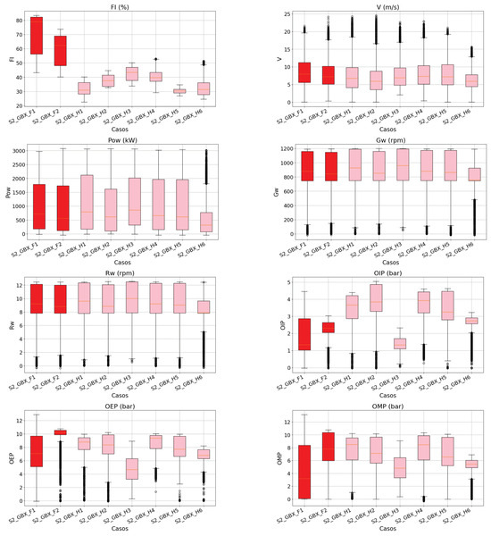 On site 2, S2_GBX_F1 and S2_GBX_F2 are analyzed as gearbox failure cases. Similarly to site 1, six cases without failure are also studied as S2_GBX_H1, S2_GBX_H2, S2_GBX_H3, S2_GBX_H4, S2_GBX_H5, S2_GBX_H6.