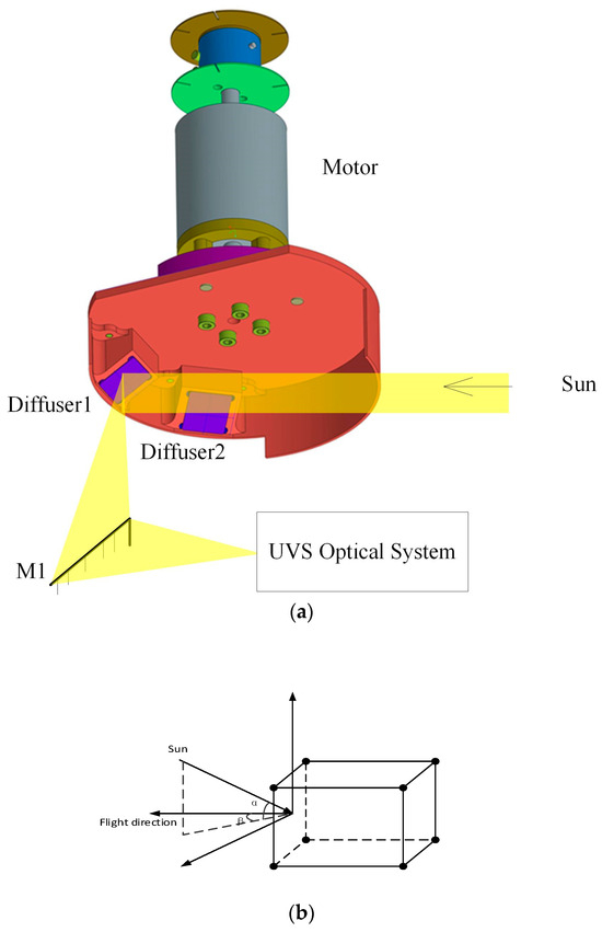 (a) On-board UVS calibration device. (b) Schematic diagram of incident light angles.