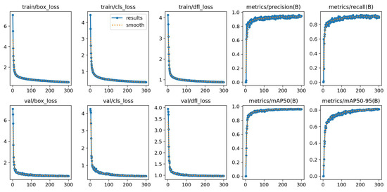 The image size for model training is 640 × 640, the training epochs are 300, the batch size is 32, the learning rate is 0.01, the SGD momentum is 0.937, the weight decay for the optimizer is 0.0005, the warm-up period is 3, the initial momentum during warm-up is 0.8, and the initial learning rate for biases during warm-up is 0.1.