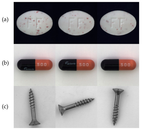 Diversity of normal samples. From top to bottom, they are (a) Pill, (b) Capsule, and (c) Screw.