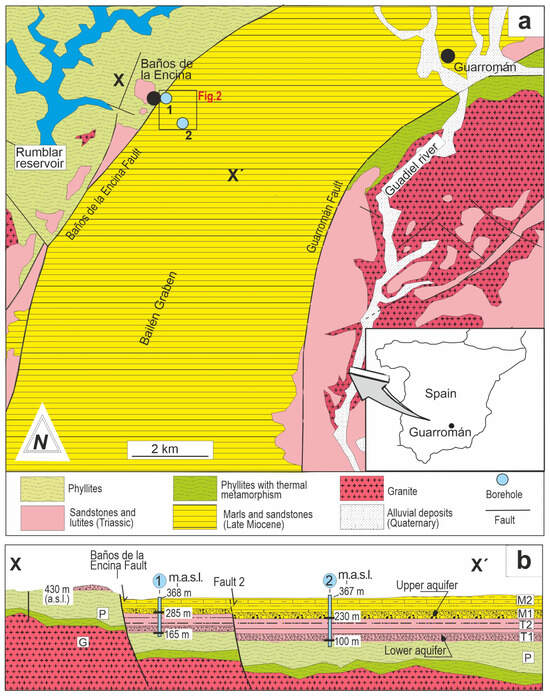 - I.G.M.E. Exploración Geológico-Minera de la Fosa Tectónica de Bailén (Jaén); Sismica de reflexión; Ministerio de Industria y Energía: Madrid, Spain, 1983; p. 64.