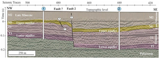 - Rey, J.; Martínez, J.; Mendoza, R.; Sandoval, S.; Tarasov, V.; Kaminsky, K.; Hidalgo, M.C.; Morales, K. Geophysical characterization of aquifers in southeast Spain using ERT, TDEM, and vertical seismic reflection. Appl. Sci. 2020, 10, 7365. [Google Scholar] [CrossRef]