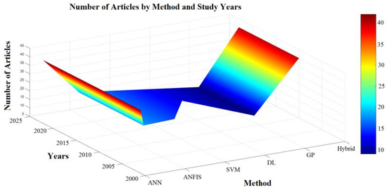 Figure 2 shows a growing tendency in recent years to use newer AI-based methods, such as Artificial Neural Networks (ANNs), Deep Learning (DL), Genetic Programming (GP), and their combination with Hybrid Algorithms for more accurate GWL studies.