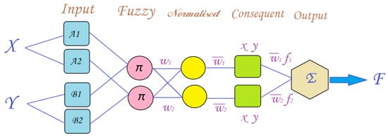 An ANFIS typically consists of five layers (Figure 5), each serving a specific function in the inference process [28,30,31]: