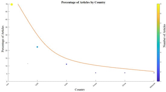 This study analysed 18 articles published in reputable journals between 2009 and 2023 and one published in 2024. Based on these articles, most studies were performed in Iran and the United States (Figure 6).