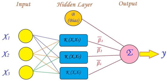 SVMs, which also belong to the family of machine learning tools, have shown remarkable success in various hydrogeological applications, including GWL modelling [44,45,46]. SVMs create an optimal hyperplane that classifies data points into different classes or predicts GWL, maximising the distance between classes to improve robustness and generalisation [47,48]. SVMs are characterised by processing high-dimensional data and capturing complex patterns within the dataset, considering multiple influencing factors simultaneously and providing a holistic perspective on groundwater dynamics [49]. Their adaptability to various kernel functions, such as the RBF and polynomial kernels, further enhances their ability to model complex relationships within hydrogeological systems [50,51,52]. SVMs have been used to address prediction accuracy and uncertainty challenges, demonstrating robust performance compared to conventional methods and optimising water resource management and environmental planning [53,54]. With the advances in machine learning, SVMs remain a valuable tool for predicting GWL and improving our understanding of subsurface hydrological processes [48]. In summary, the classical structure of an SVM is as follows [49,50] (Figure 7):