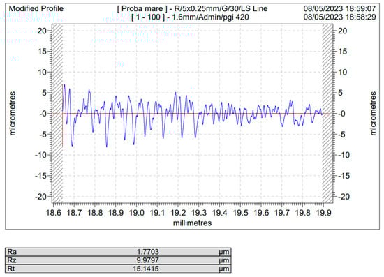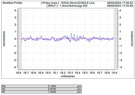 - The Rt parameter evaluates the difference between the height of the highest peak and the depth of the deepest valley within the evaluation length. To determine the surface roughness of the samples and the differences between the processes to which they were subjected, the Hommel-Etamic Nanoscan 855 Jenoptik, Vienna, Austria equipment presented in Figure 1 was used. The Hommel-Etamic Nanoscan 855 has a resolution of 0.6 nanometers on a 20 mm measuring range.