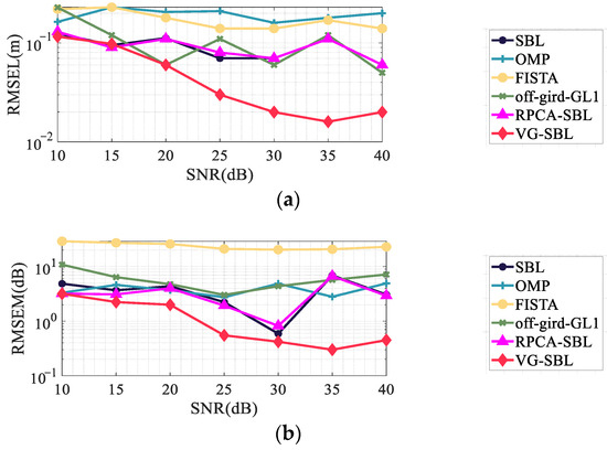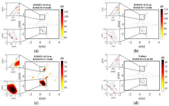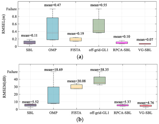 It can be seen that the average RMSEL of the traditional methods is above 0.1 m and the RMSEM is above 5 dB. The average RMSEL and RMSEM of the best-performing RPCA-SBL are 0.1 m and 5.37 dB, respectively.