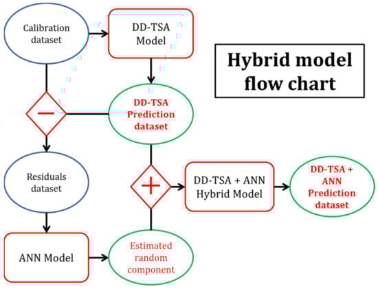 in which is the DD-TSA output (deterministic part prediction) and is the ANN output (random component estimation). The error of this model (or residual if calculated in the calibration phase) is given by the following: