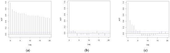 - Ljung, G.M.; Box, G.E.P. On a measure of lack of fit in time series models. Biometrika 1978, 65, 297–303. [Google Scholar] [CrossRef]