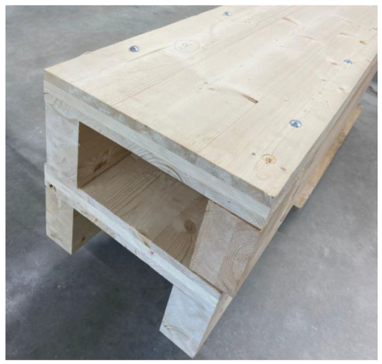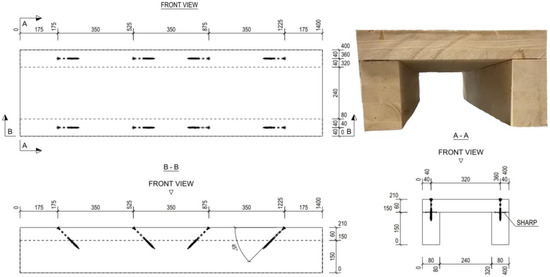 The second sub-group is presented by the two CLT panels with dimensions 1400 mm × 400 mm × 60 mm, strengthened by the two glued laminated timber ribs with dimensions 150 mm × 80 mm.