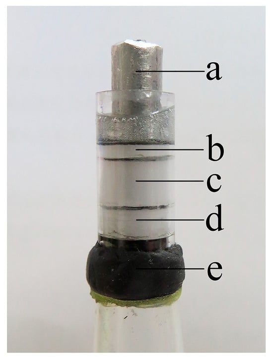 The sample 1 configuration listed in Table 1. a: pure Al; b, c, d: compacted pure silica particles; e: vacuum putty.