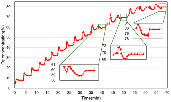 Concentration changes of O2 under different set concentrations of O2.