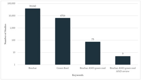 The number of studies on green roofs and biochar using different search keywords in the Scopus database.