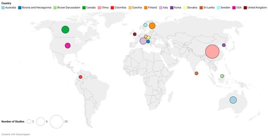 The use of biochar in GRs and other soil structures necessitates collaboration among various organizations and supportive local policies. Figure 8 demonstrates the geographical coverage of studies on biochar-amended GRs that were reviewed in this research. Most research was undertaken in China, which is followed by Canada, Australia, and Italy. This is consistent with findings in the study by Qin, et al. [145]. Local research, using region-specific materials and weather data, is likely to advance the broader adoption of biochar in green roofs (GRs) within those countries. The high number of studies on biochar and GRs in some countries could be attributed to well-developed biochar markets and government support, including funding and policies for biochar research and production. Goldschmidt [77] noted that biochar has not yet become widely commercialized due to its recent introduction. Consequently, there are no established guidelines or standards for its production, which could lead to improper manufacturing and potentially negative impacts on soil microbes and plant growth. Pourhashem, et al. [146] identified three key policy factors essential for the widespread adoption of biochar, namely funding for research and development, financial incentives, and non-financial supportive policy. While financial incentives contribute to reducing biochar costs, non-financial policies enhance social awareness and investment rates and increase market demand for biochar. You, et al. [147] also highlighted the importance of policy in the application of biochar. Policy supports biochar productions systems, thereby enhancing system efficiency and lowering costs of biochar collection, transportation, and pretreatment. Without these laws and regulations, research findings on the benefits of biochar may not be effectively translated into practical applications.