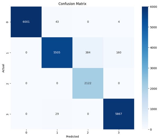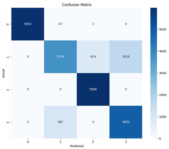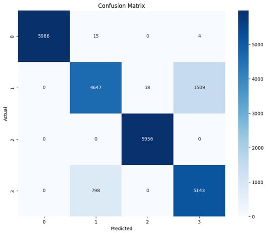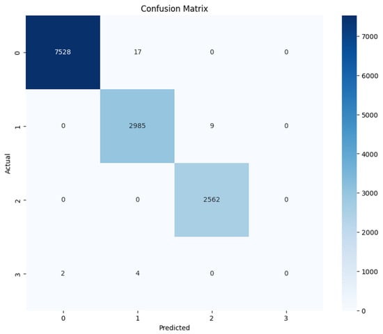 Table 7 summarizes the performance metrics for the ANN model enhanced with the BorderlineSMOTE function, highlighting its effectiveness in classifying across different categories. The model achieves exemplary results, particularly in the “allow” and “reset-both” classes, with F1-Scores of 1.00 and 0.98, respectively, reflecting nearly perfect precision and recall. The “deny” class also performs strongly, with an F1-Score of 0.95, showcasing the model’s ability to handle this category with high accuracy despite the inherent complexity. The “drop” class, though with a lower support, still attains a notable F1-Score of 0.92, supported by a perfect recall, demonstrating the model’s robustness even with fewer instances.