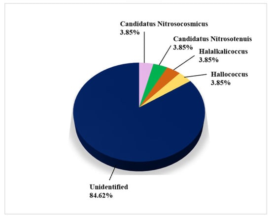Figure 8 shows the genera of archaea isolated and identified on biodeteriorated CHL using CI approaches. Only a single species, Haloferax mediterannei, isolated from the Herculaneum’s House of the Bicentenary, was identified on the basis of a culture (Supplemental Table S5).