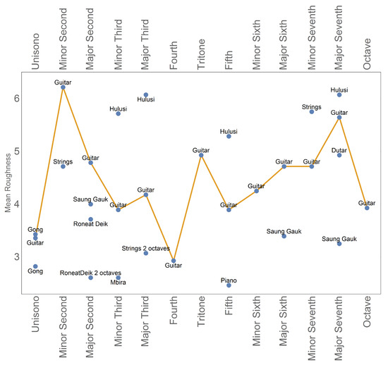 - Grey, J.M.; Moorer, J.A. Perceptual evaluations of synthesized musical instrument tones. J. Acoust. Soc. Am. 1977, 62, 454–462. [Google Scholar] [CrossRef]