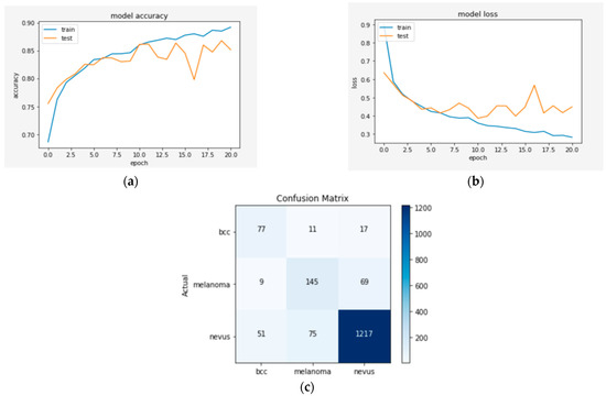 In deep learning, the most challenging part of building a model is data collection. To achieve high accuracy, we need large datasets, but obtaining real data that precisely fit the problem is often difficult. As mentioned in the “Dataset” Section, Kaggle provides a mid-solution by offering datasets that can potentially fit our study needs while providing an acceptable number of data points for deep learning models. The choice of a different amount of data for each of these three models was intentional as it allowed us to compare the results based on varying data quantities. The rule of data balance for training deep learning models was considered during the collection of the training and test data to avoid model bias towards any of these types: BCC, MEL, or NV.