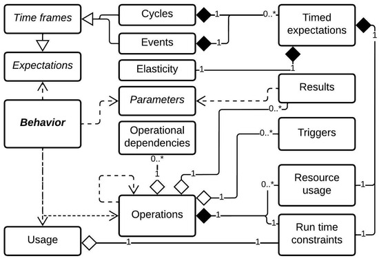 Other approaches aim to model software’s and services’ behavior with their language, specifically behavioral relationships among software units. For instance, in [16], the authors propose a software behavior modeling language that differentiates itself by supporting business analysts and software architects from the initial phases of the SDLC. To our knowledge, most existing approaches do not describe diachronic behavior (how behavior and even its changes, change over time) that includes elements of uncertainty such as Human-Provided Services (HPSs) [30], where people are actors that affect and constrain a system’s behavior [15,31], reaching into the field of HCI [32] to study how the factors surrounding the user affect the consumption of a unit of software. This is a fundamental issue for our research and contribution, as a secondary goal is to be able to provide energy ratings based on these features.