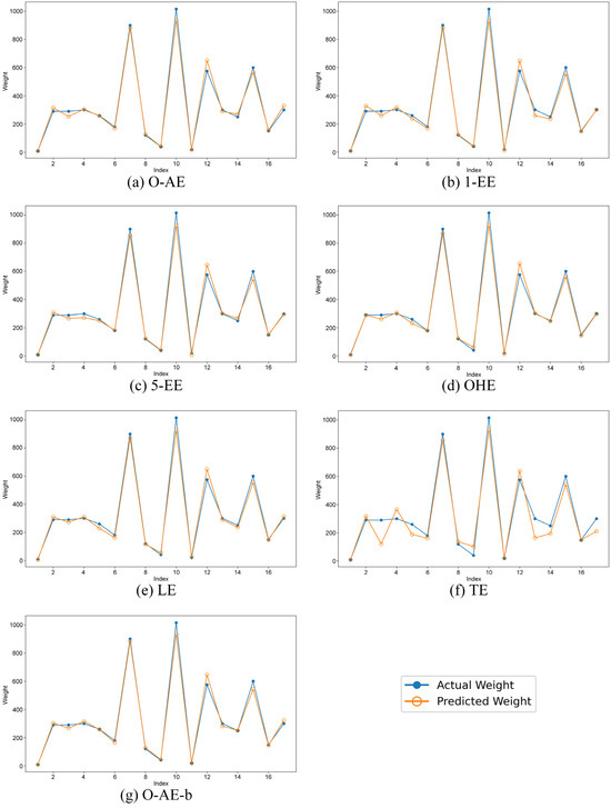 Overall, the experimental results of O-AE-b and O-AE are superior compared to other classical encoding methods. The unordered multi-categorical variables processed by O-AE-b and O-AE were able to satisfy the data input requirements of the subsequent neural network model and facilitated the ability of neural network data learning to improve the neural network target prediction results.