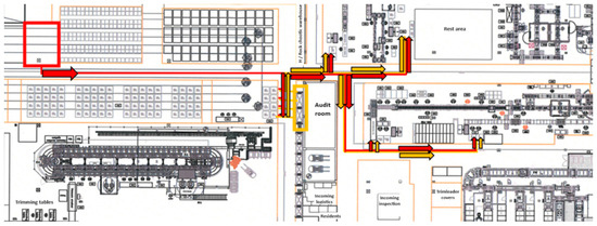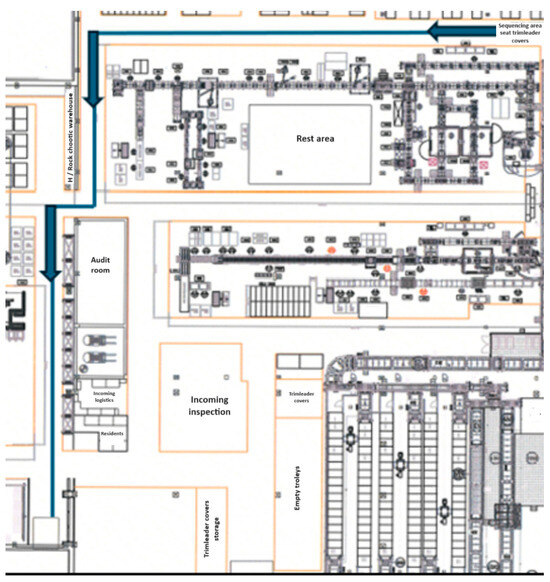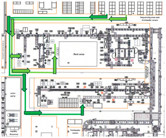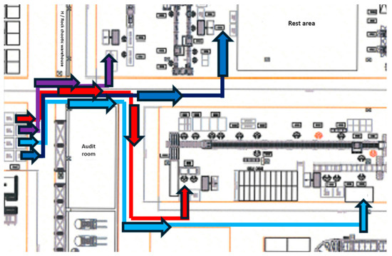 As in Measurement 1, this part was performed by forklift truck; after checking the material, the worker heads to the sequencing workstation. The following Figure 3 will show the movement from the quality control workstation to the sequencing workstation.