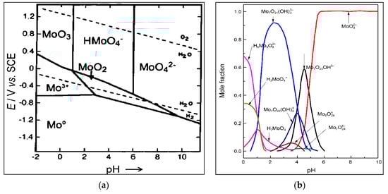 (a) Molybdenum Pourbaix diagram. (b) Molybdenum speciation [40,41,42].
