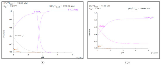 (a) Iron speciation for the copper solution. (b) Zinc speciation for the copper solution using the MEDUSA software.