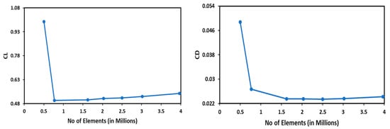 A grid independent test is performed by determining CL and CD for the NASA CRM wing, baseline wing model. The number of elements varied from 0.5 million to 4 million with an increment of 0.5 million. The graphs are plotted between aerodynamic coefficients, and the number of elements as shown in Figure 7. The deviation of CL and CD between 2 million and 2.5 million elements are 0.74% and 0.55%, respectively. Therefore, the 2 million elements are used for the rest of the computational analyses.