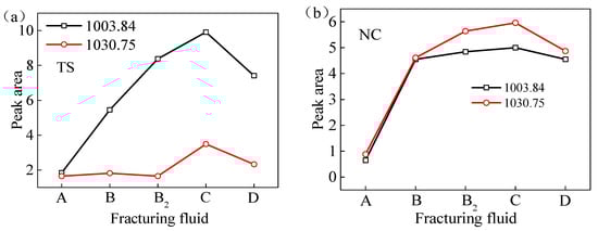 Peak areas of clay minerals (-Si-O-) of test samples from two regions processed with VESFFs: (a) TS coal samples; (b) NC coal samples.