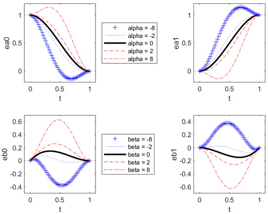 The blending functions are described with four parameters: (Equation (6), Figure 4). If and , blending functions are those of classical cubic Hermite splines.
