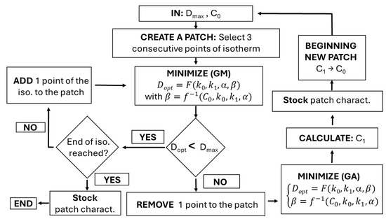 is the maximum acceptable distance between the curve and patch points; represents the algebraic initial curvature of the first patch. and are user-fixed parameters. is the optimized (i.e., minimized) distance between the patch points and HQ spline. GA is for the Genetic Algorithm method, and GM is for the gradient descent method. is the calculated final curvature of the patch that becomes the initial curvature of the new patch.