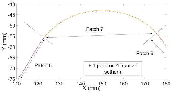 This model of interpolation, between two points, makes it possible to fit and decompose a discrete curve, in this case, an isotherm, into a small number of splines connected in tangency and curvature (named patches). Figure 5 explains the procedure followed.