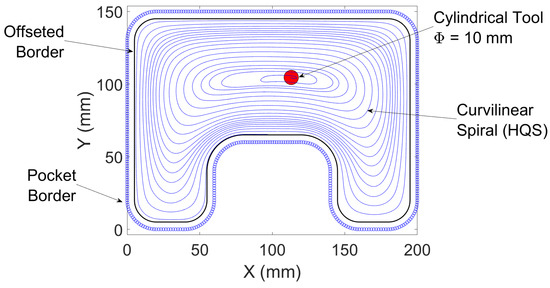 - Global strategy to build a spiral-like trajectory (or curvilinear spiral). Macroscopically, this kind of toolpath begins at a center point of the pocket and expands outward without “stop and go”. The toolpath morphs progressively to the shape of the pocket boundary. Natively, curvilinear spirals (or spiral-like toolpath) have a higher degree of continuity [18,19,20,21].