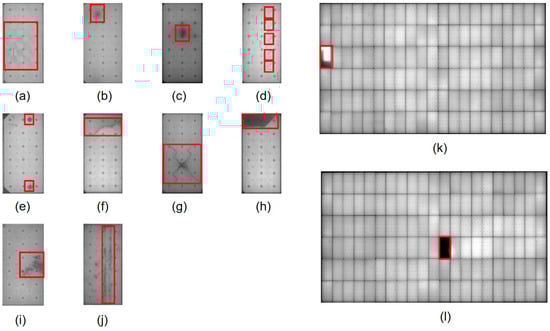 Samples of 12 kinds of EL defects, where (a–l) have been listed in Table 3.